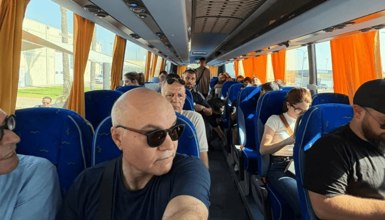 “Após uma percurso de 1h40 até a fronteira com a Jordânia, e uma espera de mais 1h30 nos trâmites do posto saída de Israel, conseguimos chegar à fronteira com a Jordânia, onde fomos muito bem recebidos por diplomatas brasileiros – em segurança”.